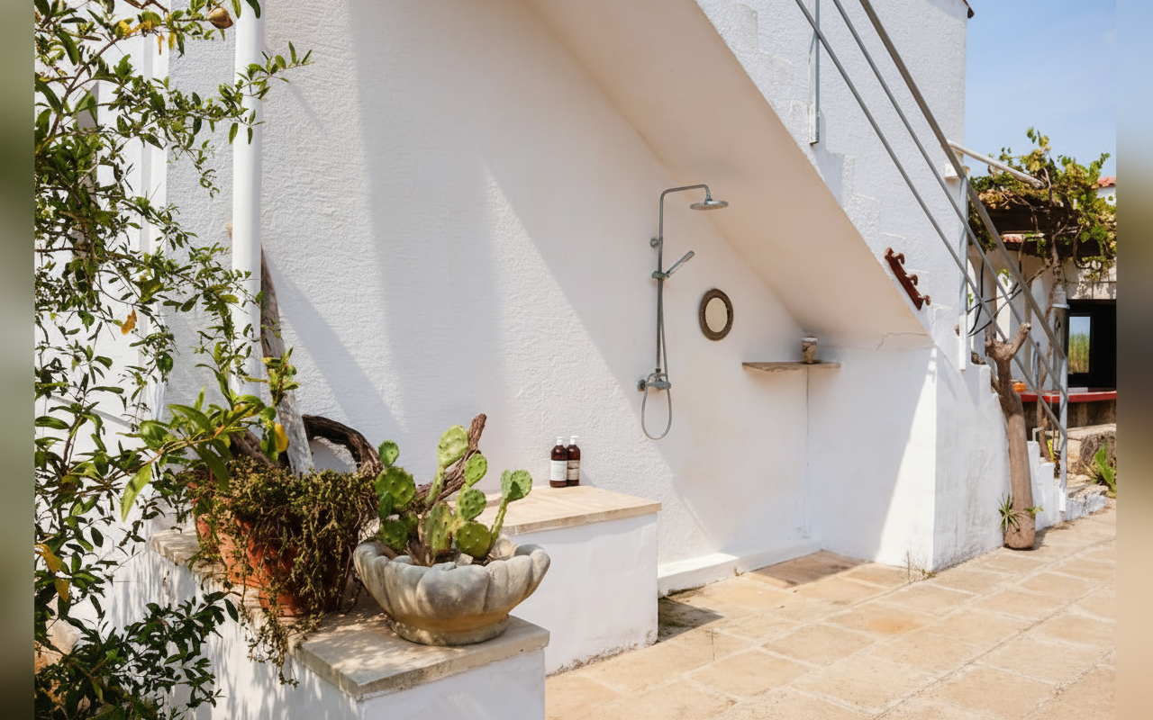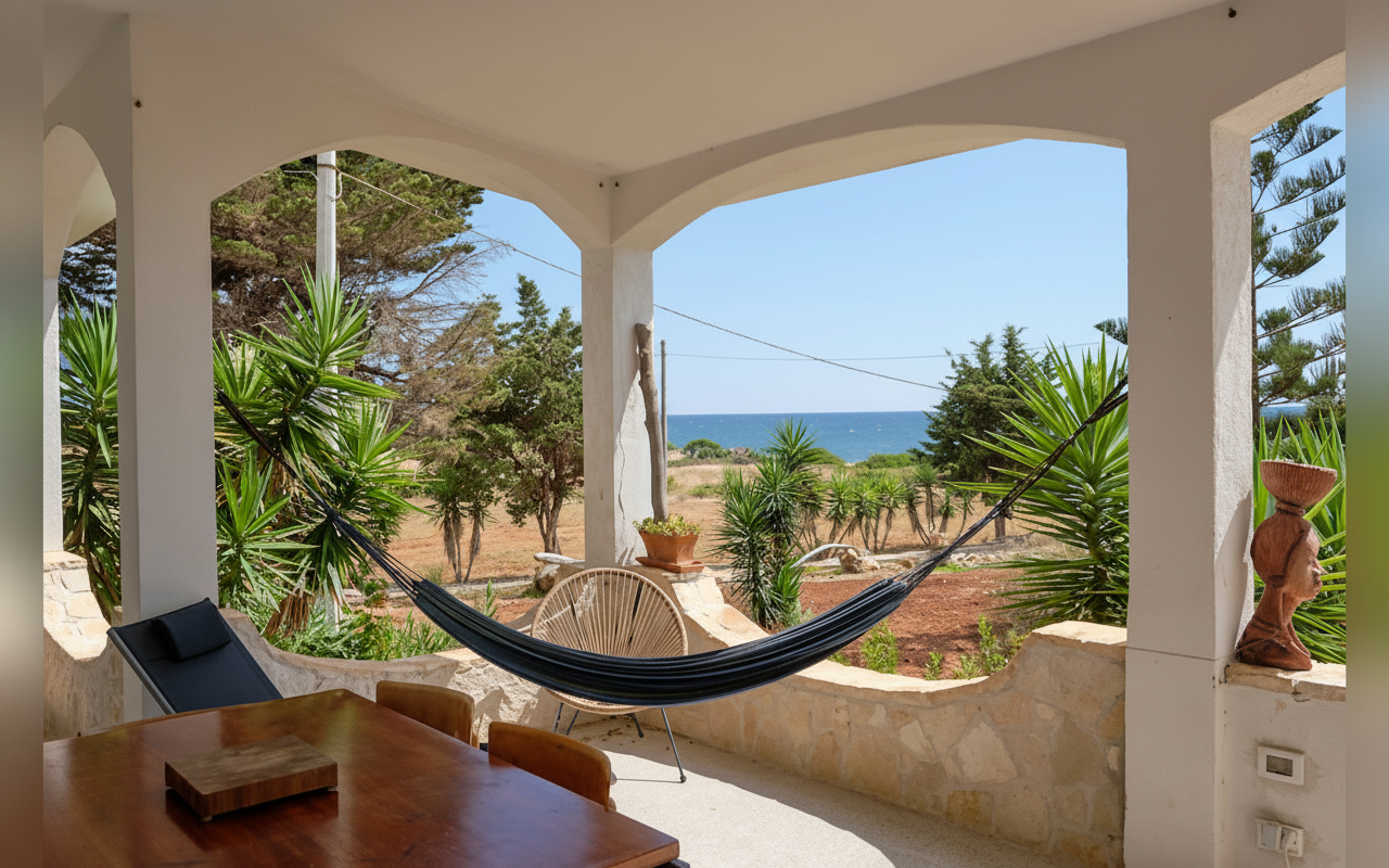 Ampia villa fronte mare composta da tre camere da letto – due matrimoniali e una con letti singoli – ideale per ospitare fino a 6 persone. Gli ambienti interni sono caratterizzati da uno stile unico che unisce elementi vintage e influenze africane, creando un’atmosfera calda e accogliente. La casa dispone di due bagni completi, un bagno di servizio e spazi esterni attrezzati con docce all’aperto, perfette dopo una giornata al mare. All’esterno, il giardino e la jacuzzi offrono momenti di relax immersi nella natura, rendendo la villa perfetta per chi cerca privacy, comfort e autenticità a pochi minuti dalle spiagge del Salento.